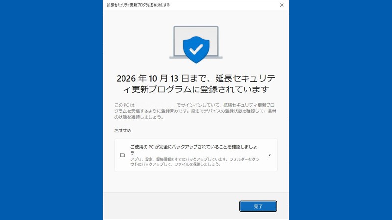 Windows10の延命策:拡張セキュリティ更新プログラム(ESU)を体験してみた